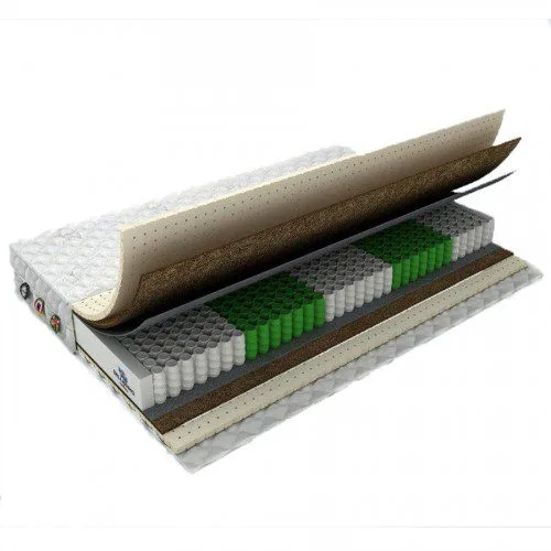 Матрас BELLISSIMO SIMONI – двусторонний умеренно жёсткий матрас. Основа – независимый пружинный блок TFK знаменитой немецкой фирмы AGRO. Каждая пружина изготовлена из специальной проволоки и помещена в отдельный «кармашек» из нетканого материала. Отличительной особенностью данного пружинного блока является высокий уровень «точечной эластичности». Говоря проще, сжимаются только те пружины, на которые оказывается давление. Это позволяет матрасу максимально точно адаптироваться под контуры нашего тела и обеспечить позвоночнику оптимальную поддержку во время сна. Добавление кокосовой койры с каждой стороны придает изделию естественную жесткость и упругость. Использование натурального кокосового волокна также продлевает срок службы матраса В матрасе Bellissimo Simoni используется специальный высокоэластичный ППУ повышенной плотности. Он обеспечивает матрасу выдающуюся упругость и комфорт.